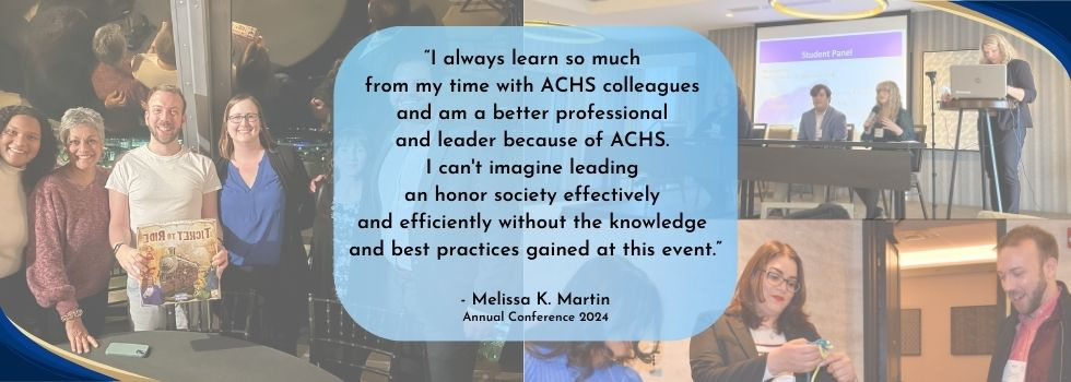 The mission of ACHS is to build a visibly-cohesive community of national and international honor societies that promotes the values of higher education; fosters excellence in scholarship, leadership, service, and research; and adheres to the standards of honor society excellence.